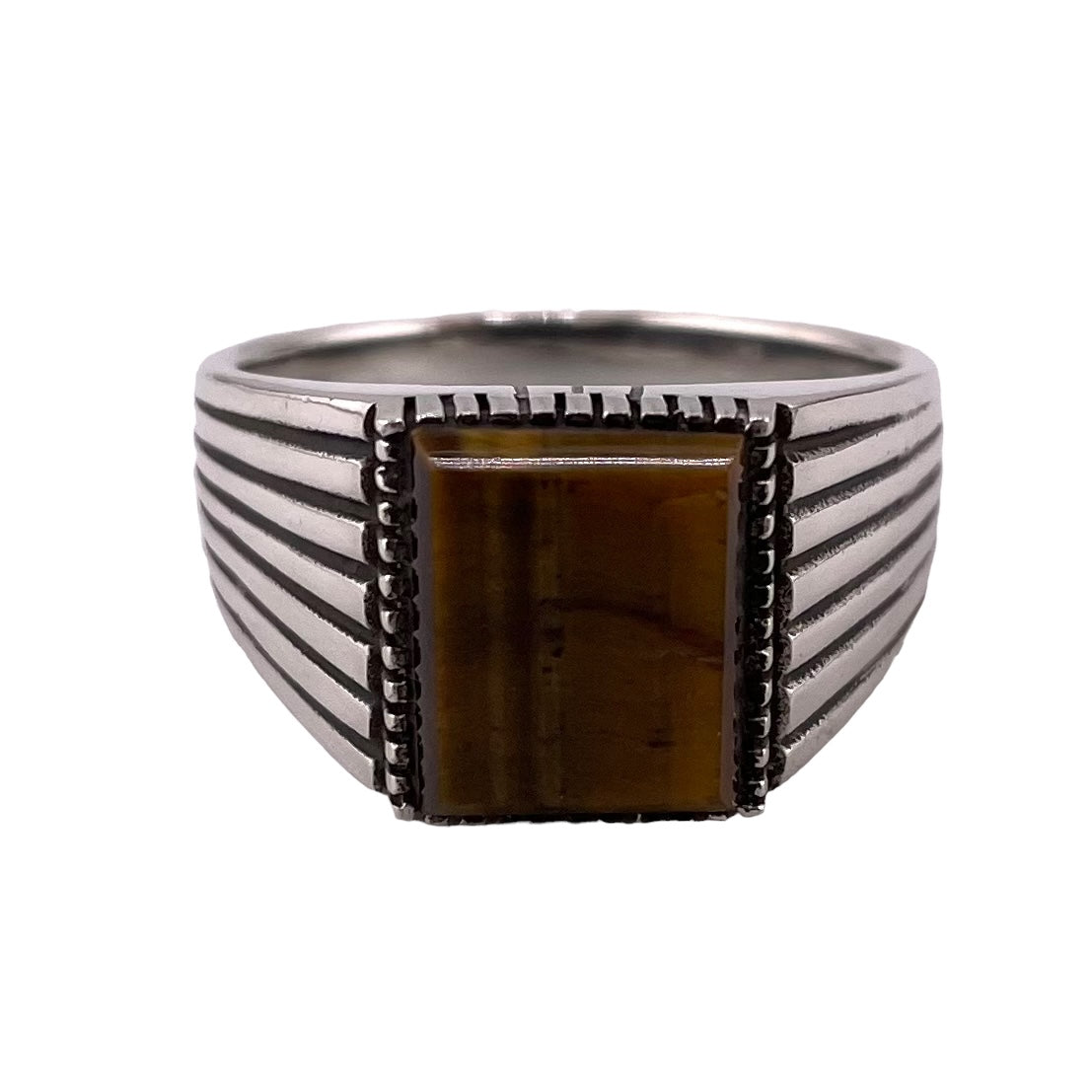 Tiger Eye Stone Rectangle Ring Sterling Silver
