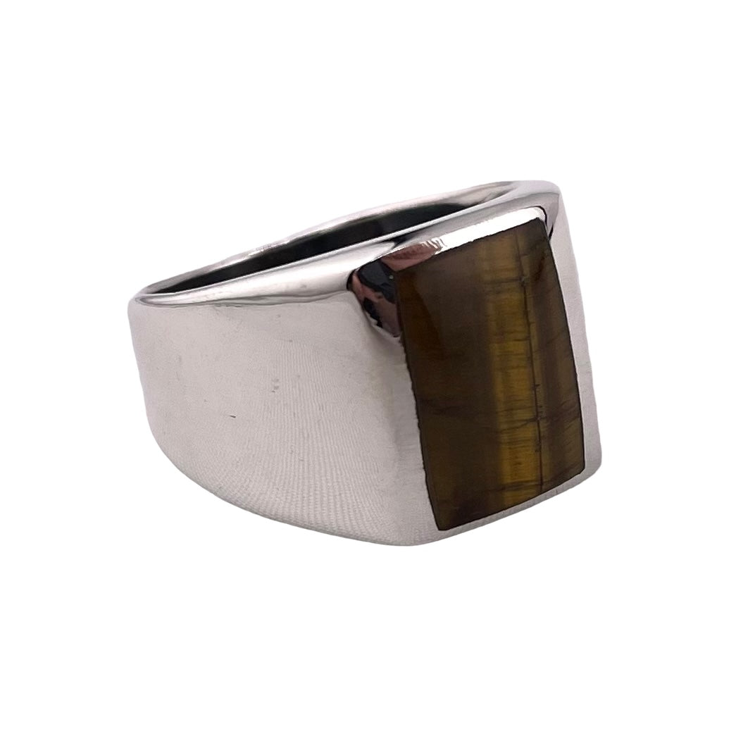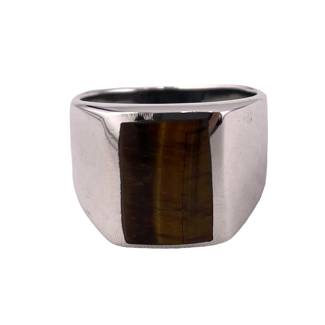 Tiger Eye Rectangle Stone Ring Sterling Silver. This ring measures 1/2" wide and is available in sizes 8-13.