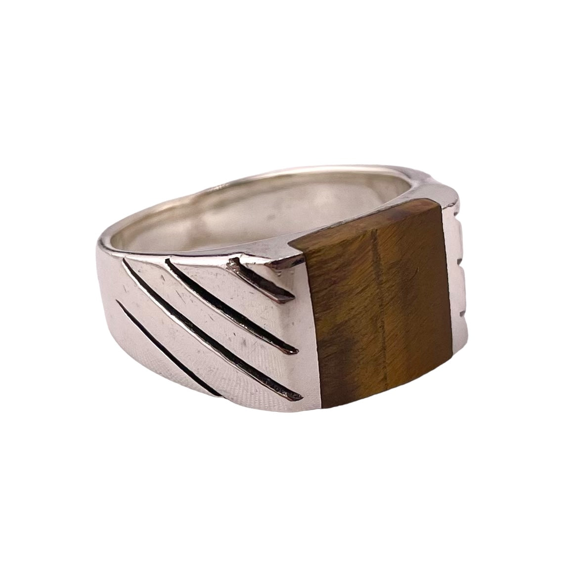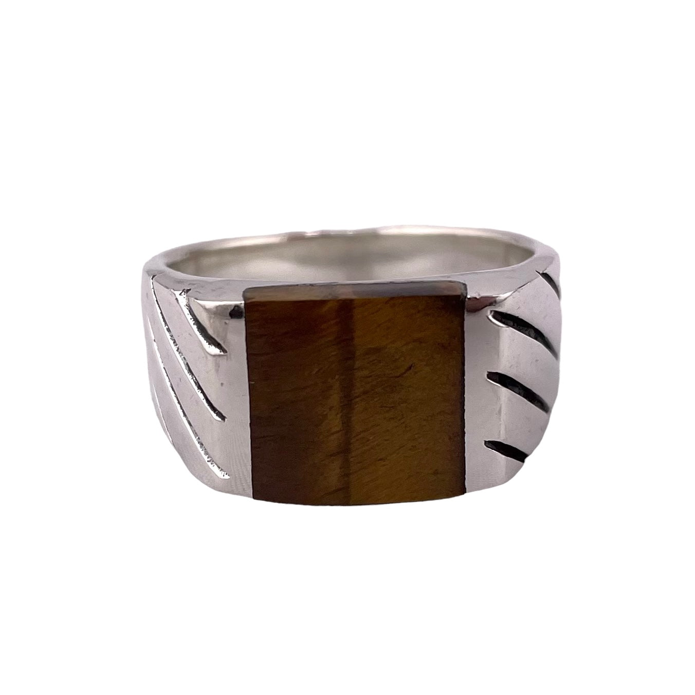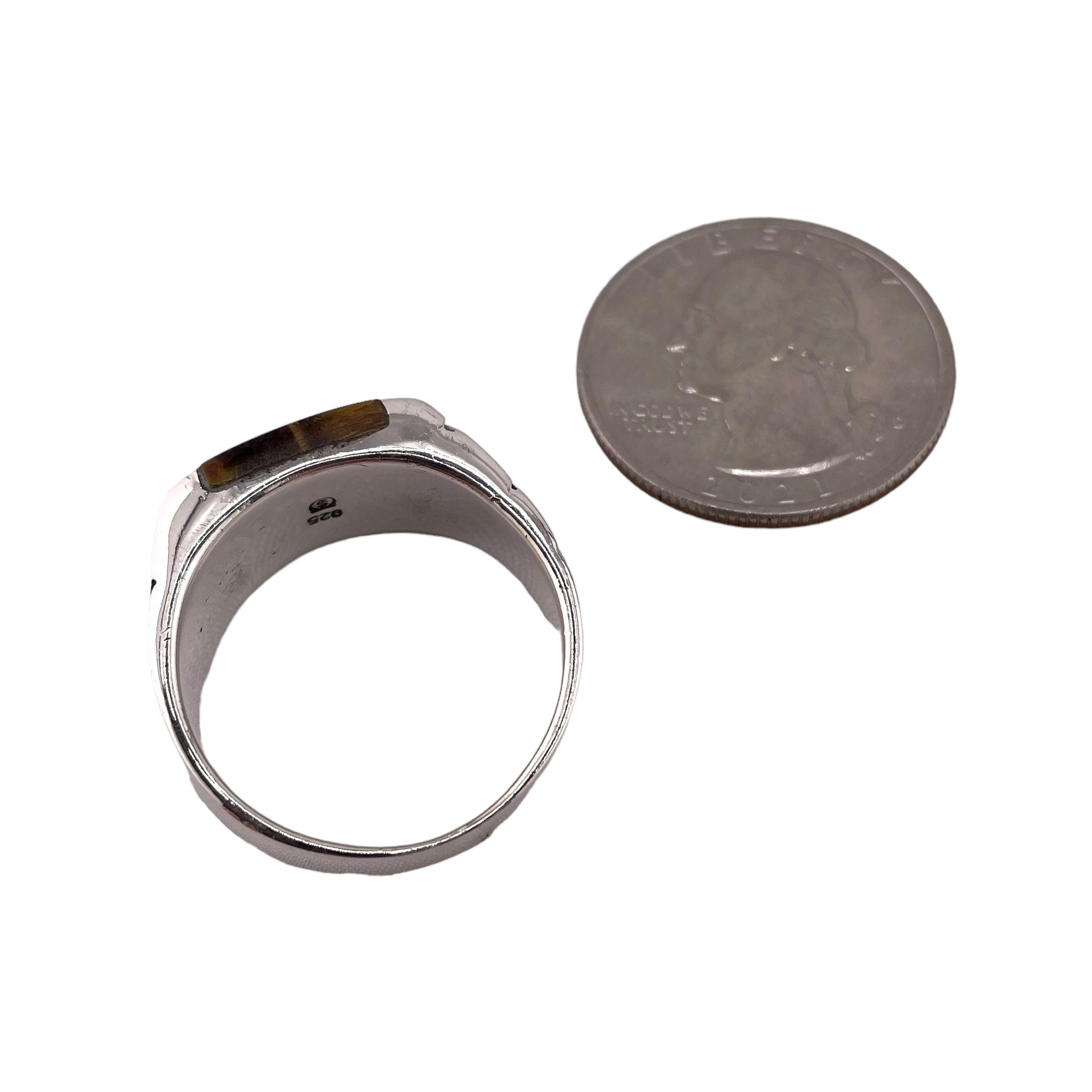 Tiger Eye Stone Ring Sterling Silver. This ring measures 11mm length, at the longest point and is available in sizes 9-12.