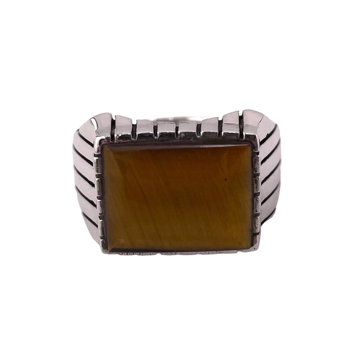 Tiger Eye Stone Rectangle Ring Sterling Silver. Ring measures 1/2" wide and is available in sizes 8-13.