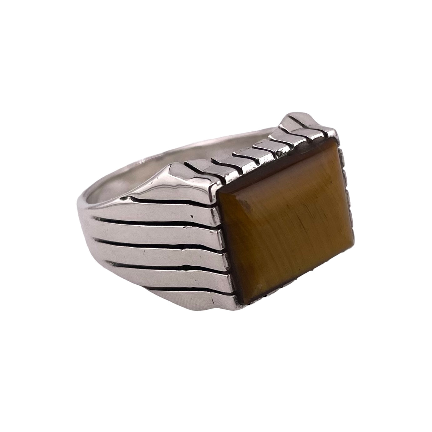 Tiger Eye Stone Rectangle Ring Sterling Silver