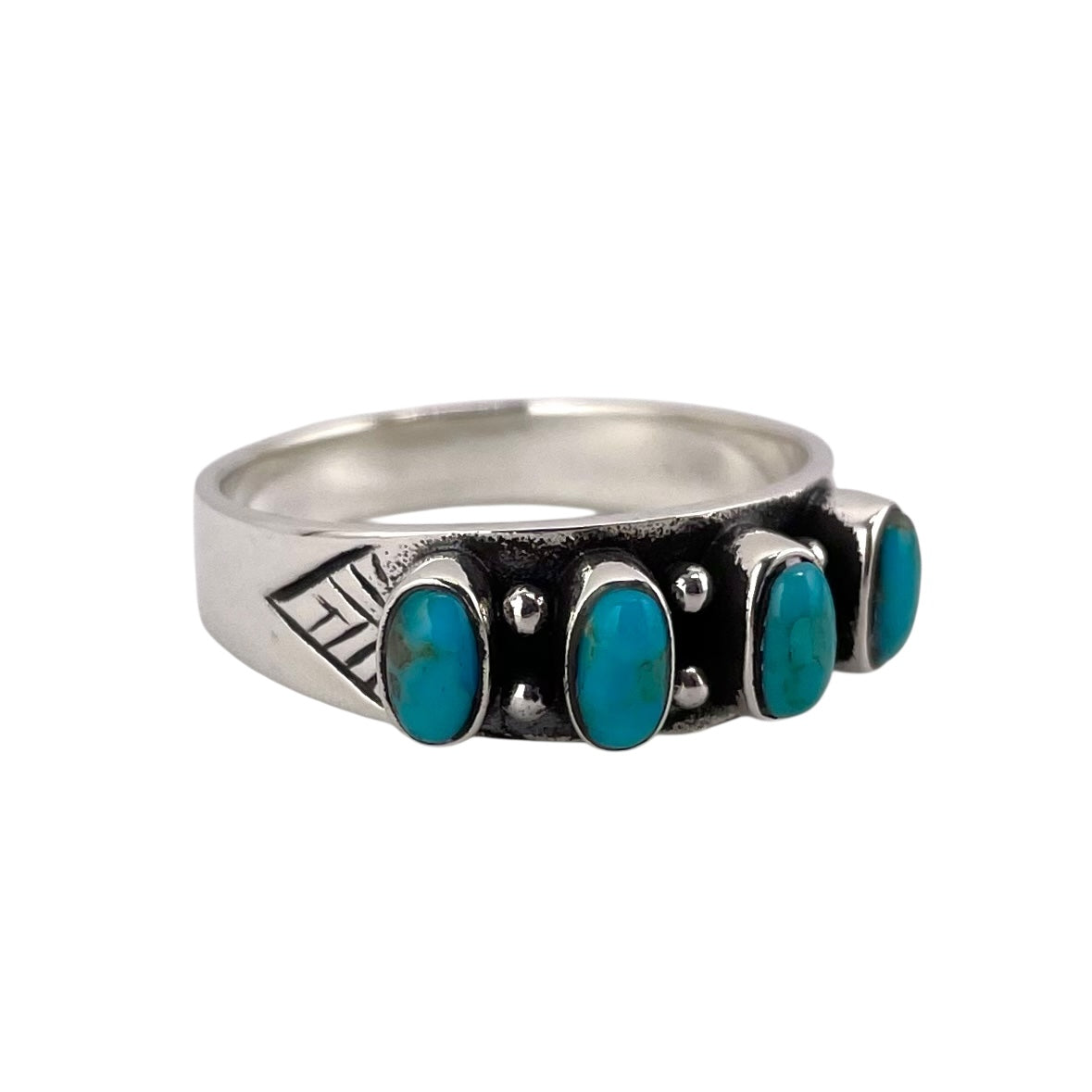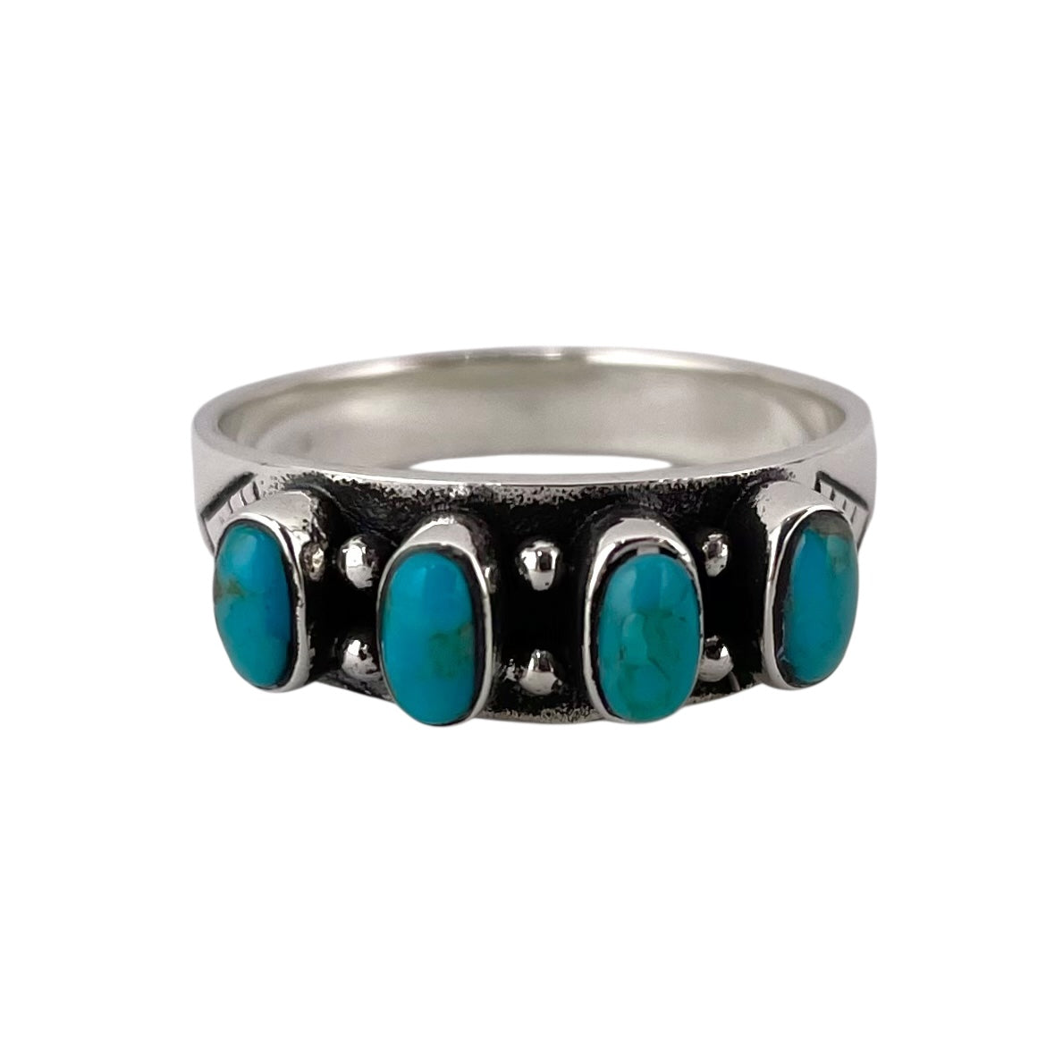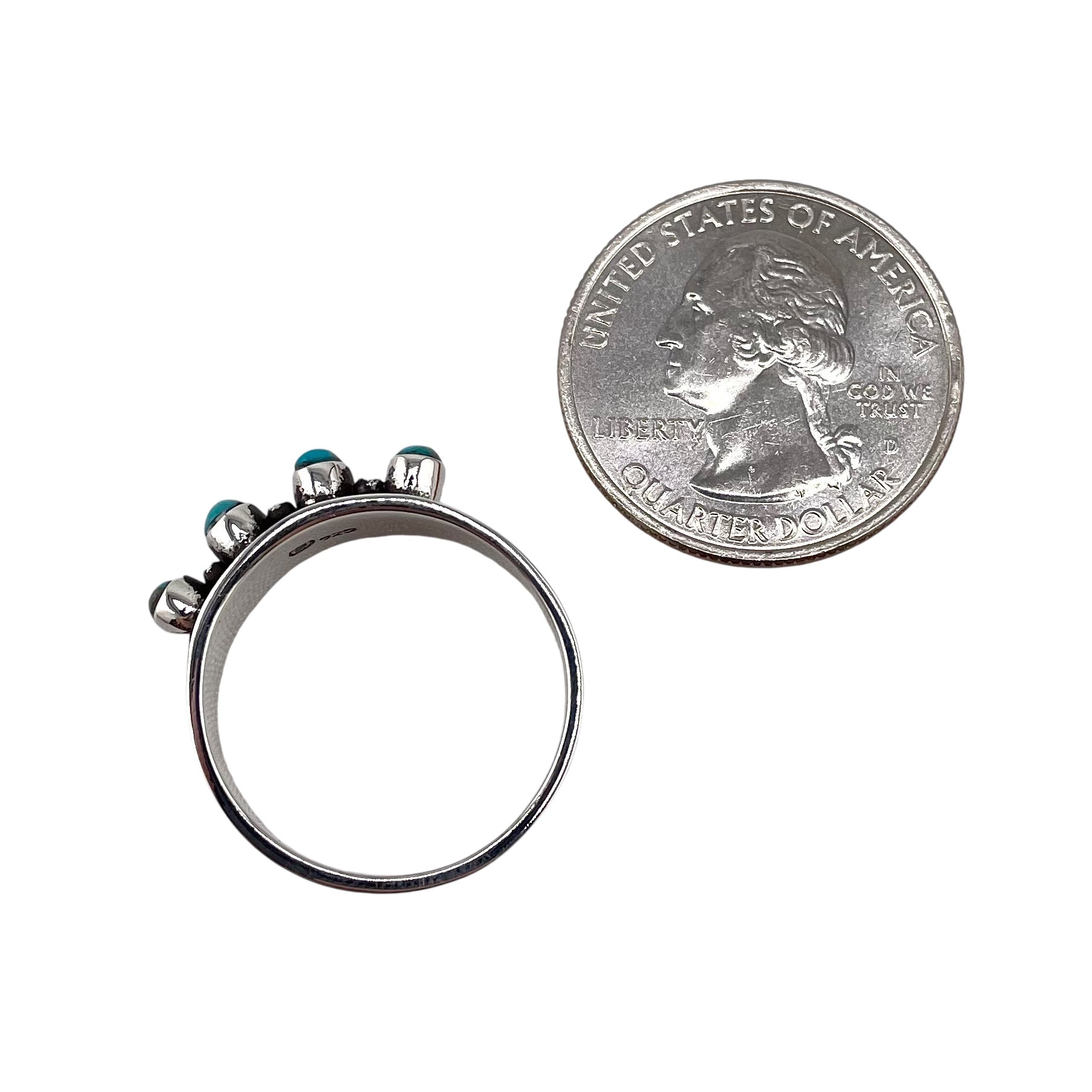 Turquoise 4 Stone Round Oval Ring Sterling Silver. Ring centerpiece measures 1/4" wide.