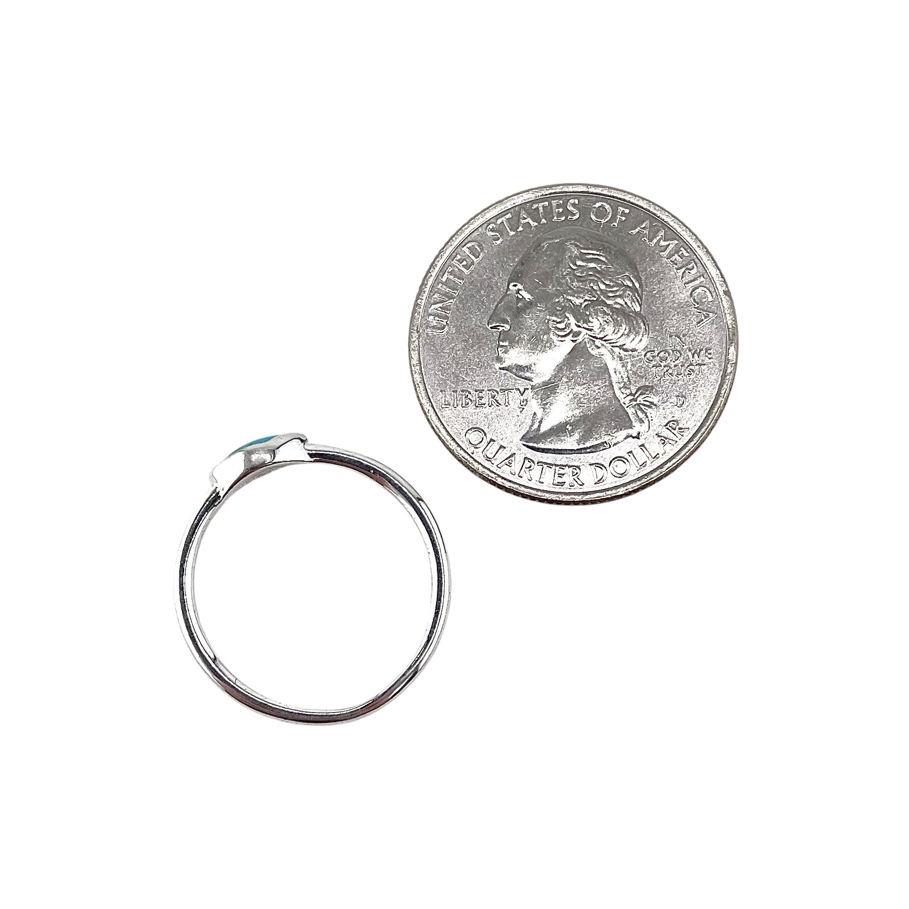 Sterling Silver Turquoise Ring. This ring measures 1/4 wide. The stones measure 3 x 6mm. This ring is available in sizes 6-9.