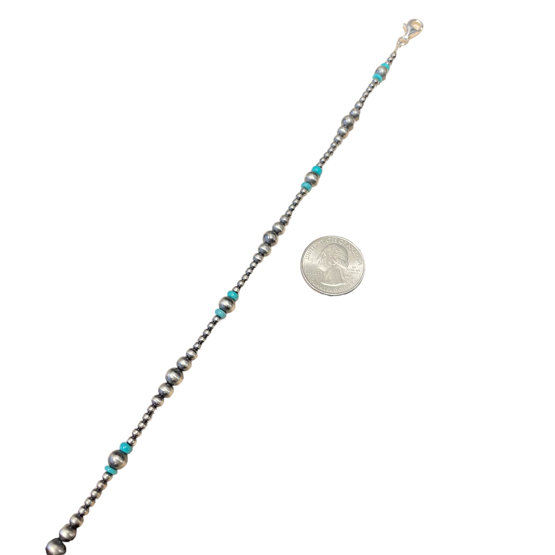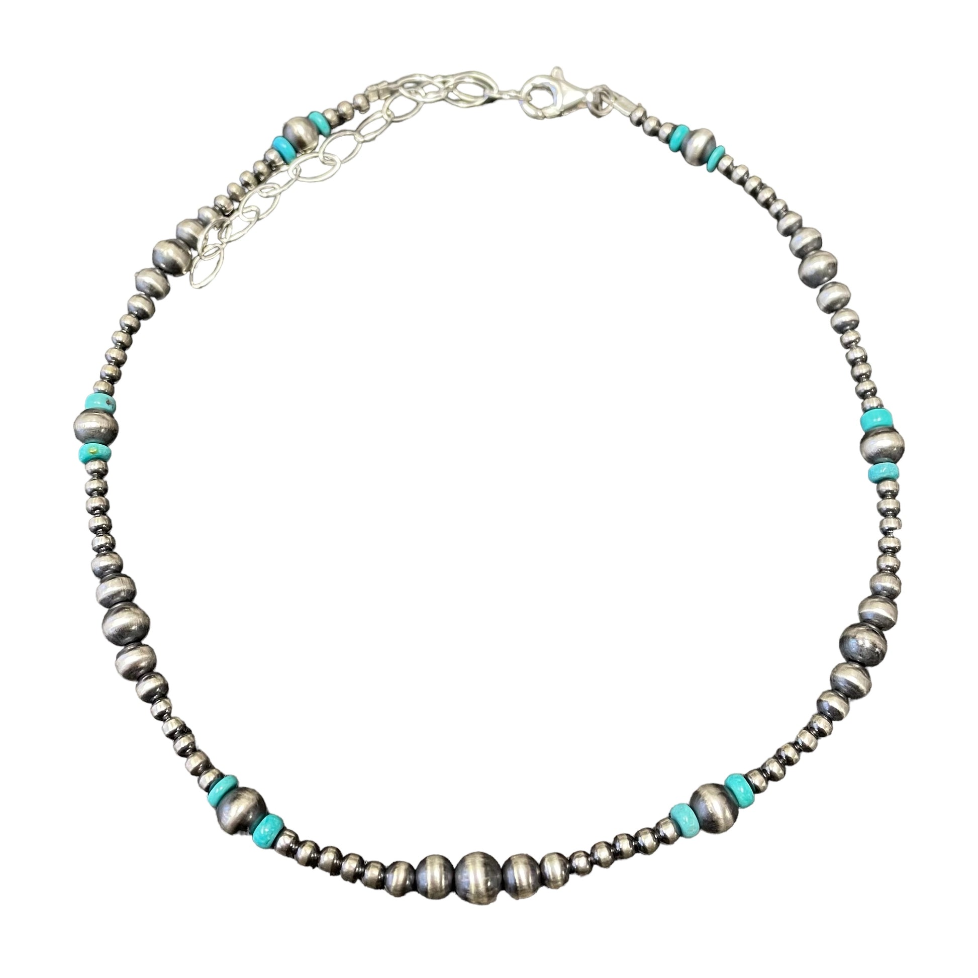 Turquoise Desert Pearl Bead Necklace Sterling Silver