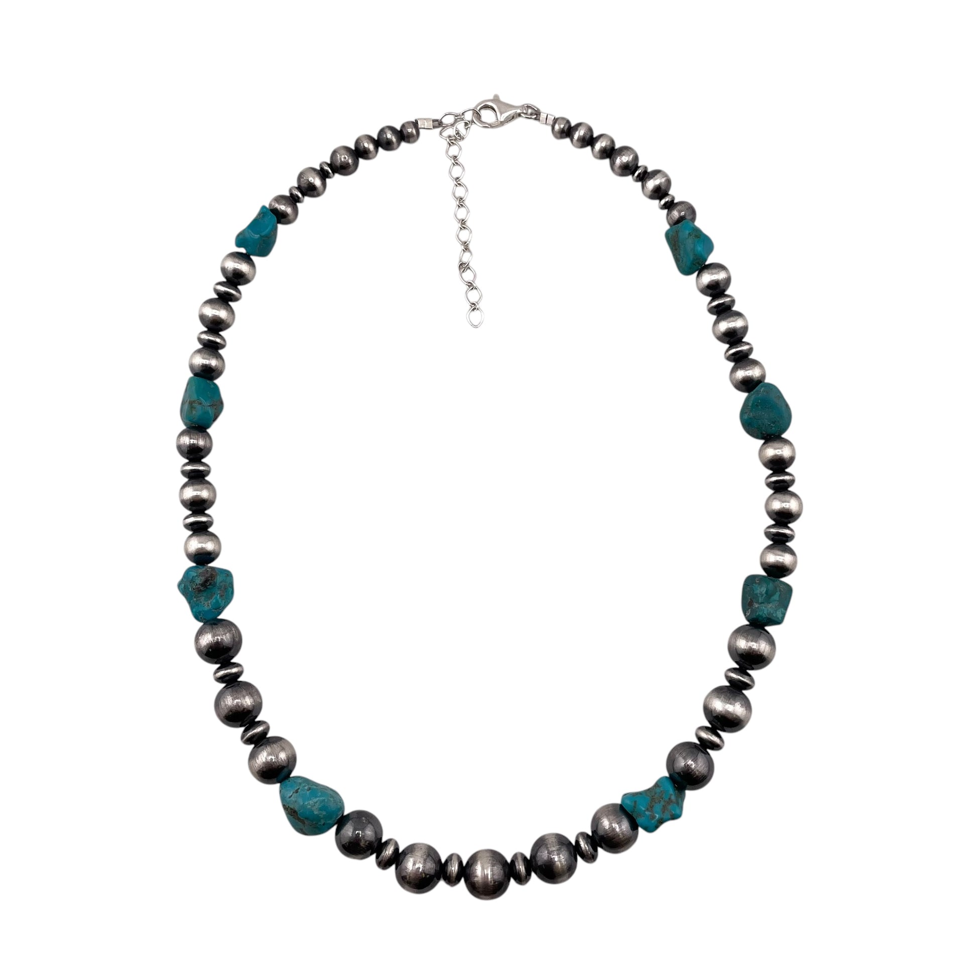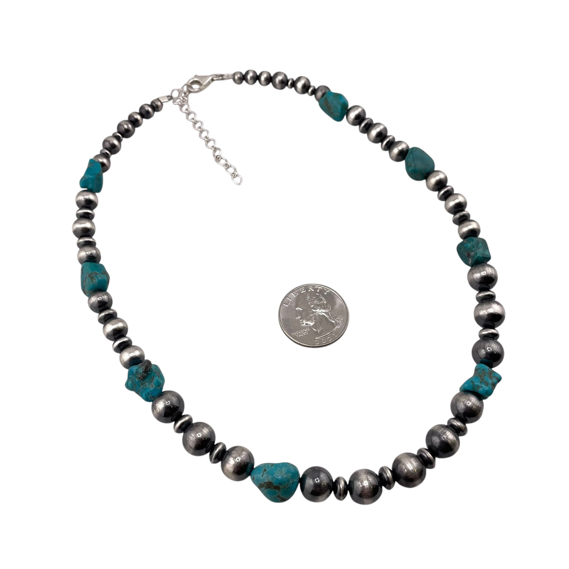 Turquoise Desert Pearl Mixed Bead Necklace Sterling Silver