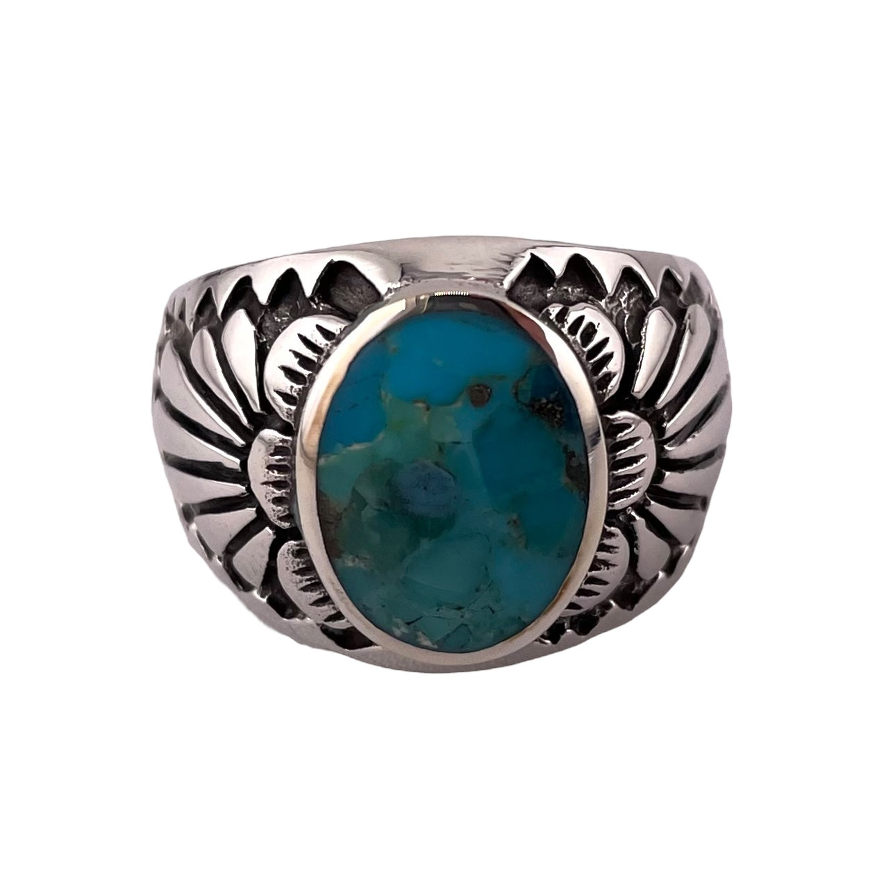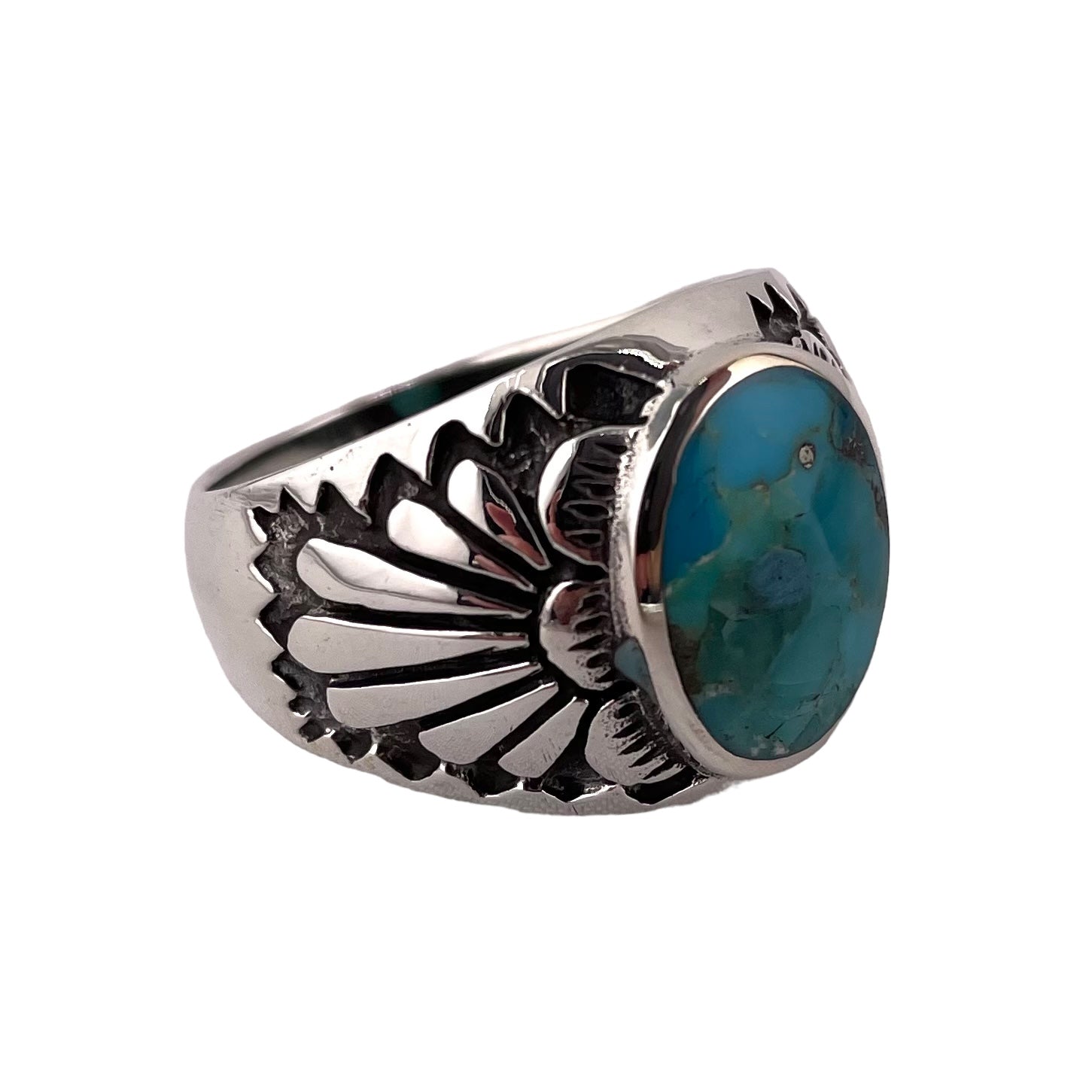 Turquoise Oval Stone Ring Sterling Silver. This ring measures 17mm length, at the longest point and is available in sizes 9-14,