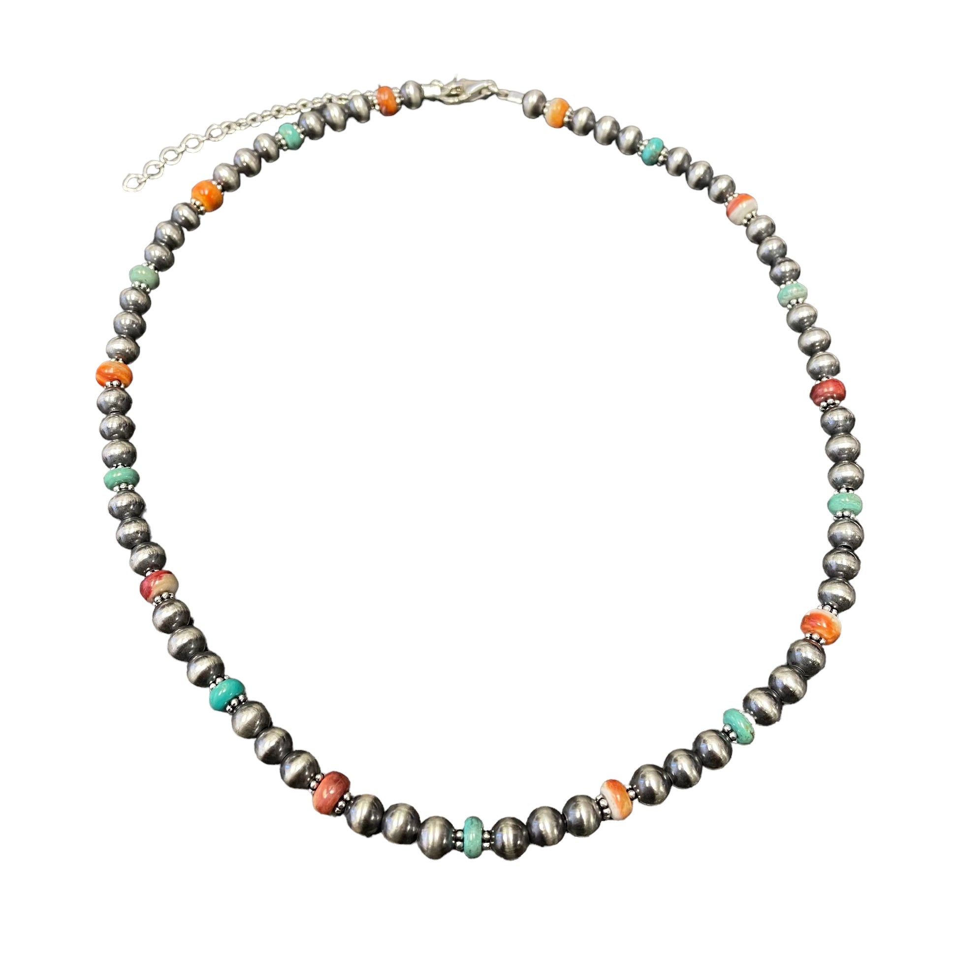 Turquoise & Spiny Oyster Desert Pearl Bead Necklace Sterling Silver