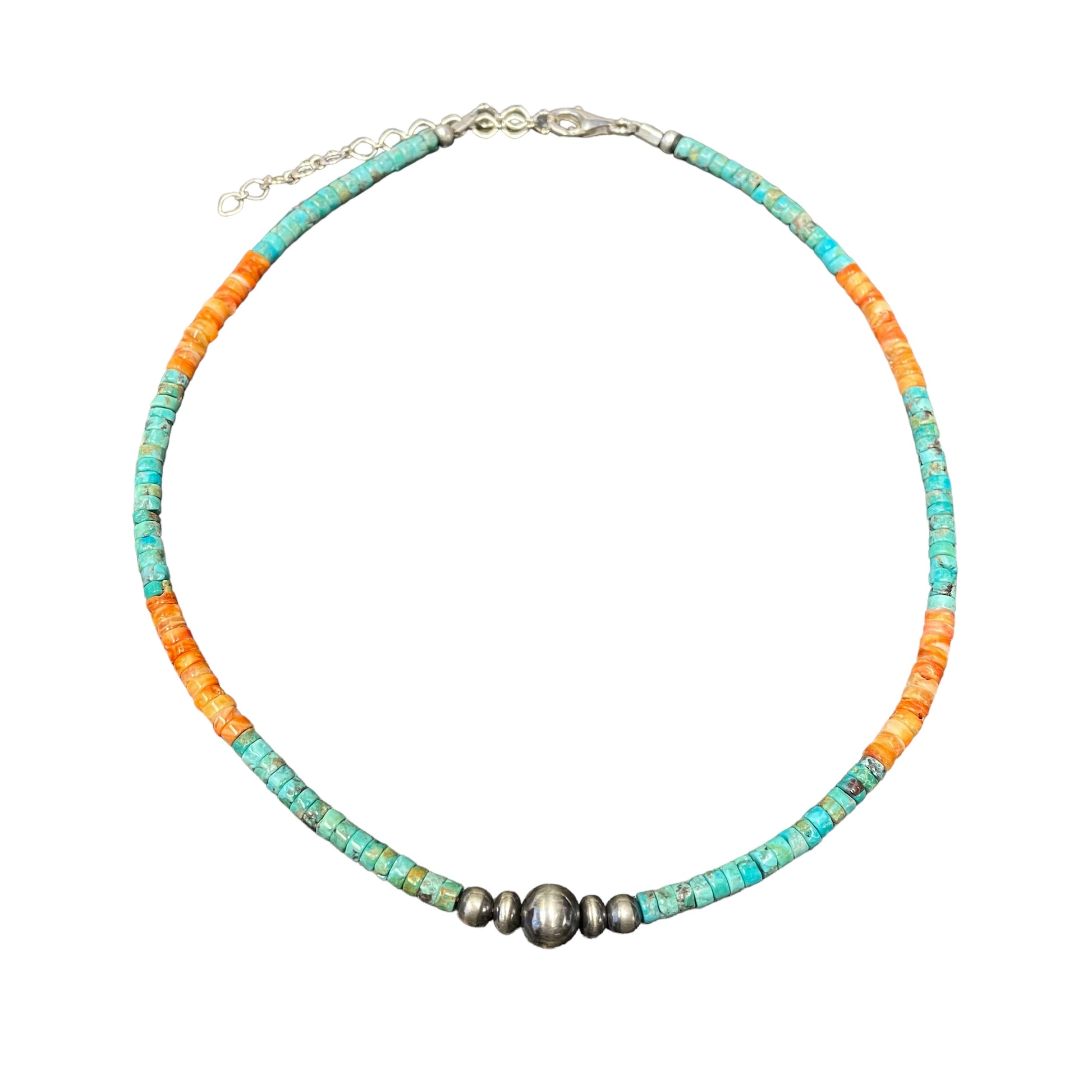Turquoise & Spiny Oyster Desert Pearl Bead Necklace Sterling Silver
