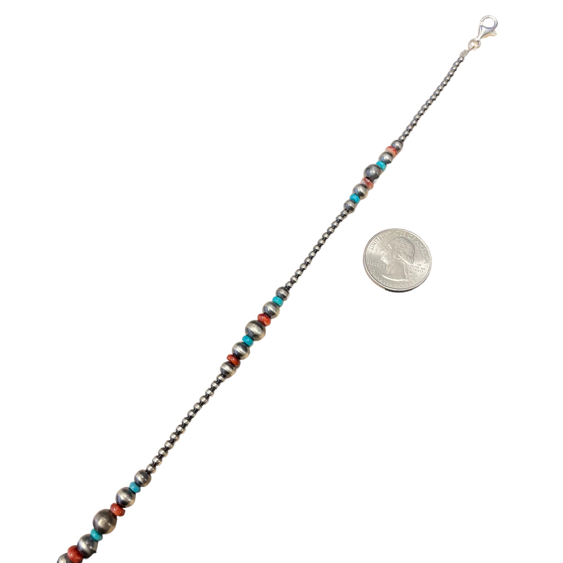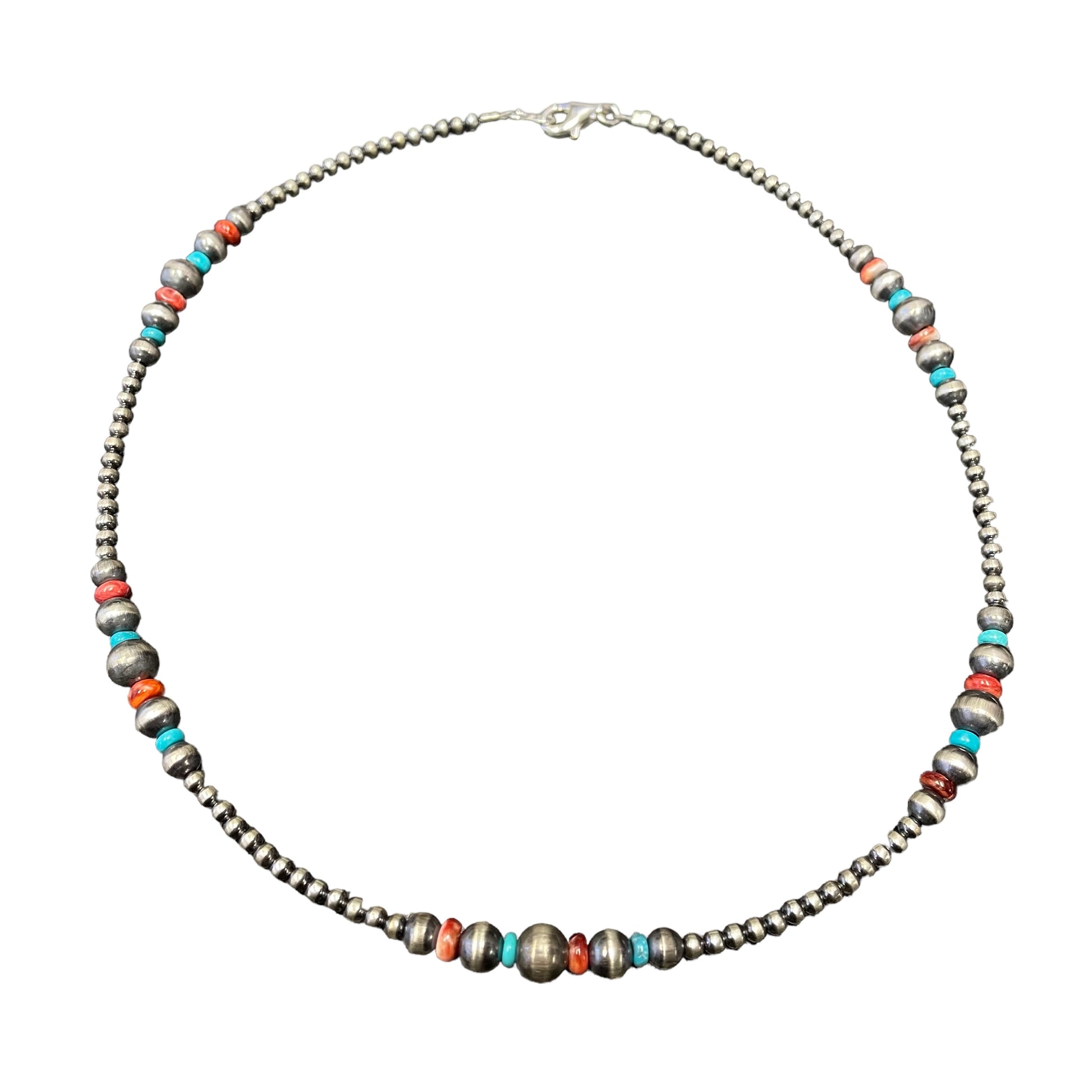 Turquoise & Spiny Oyster Desert Pearl Bead Necklace Sterling Silver