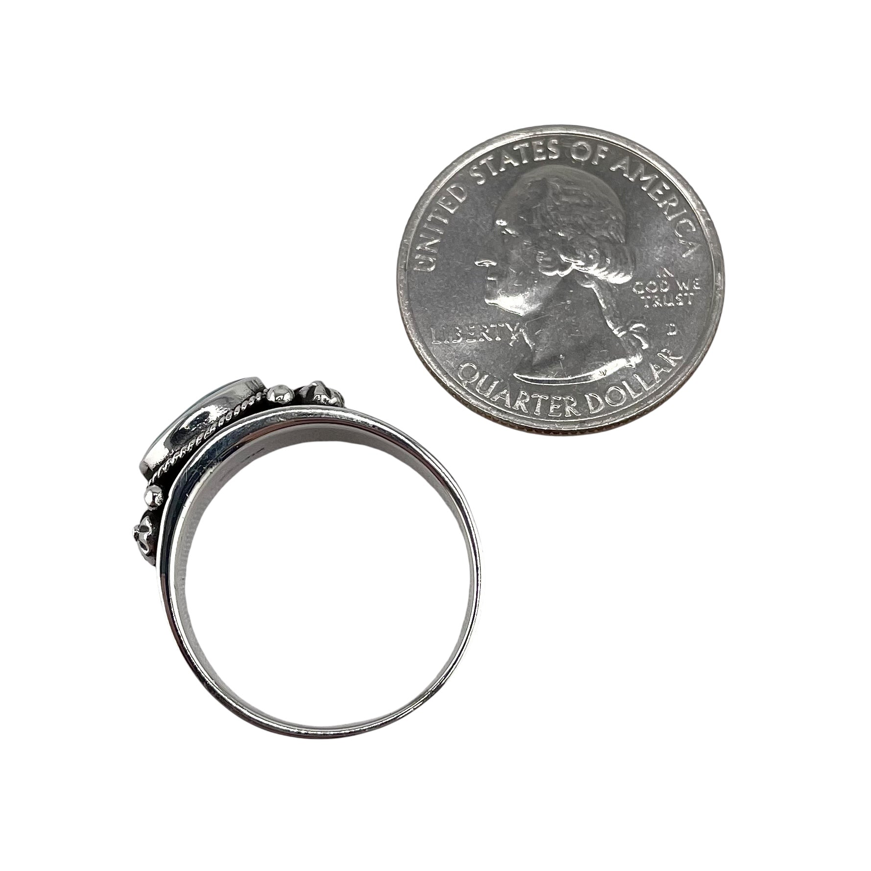 Turquoise Stone Oval Bead Rope Ring Sterling Silver. Ring centerpiece measures 1/4" wide.