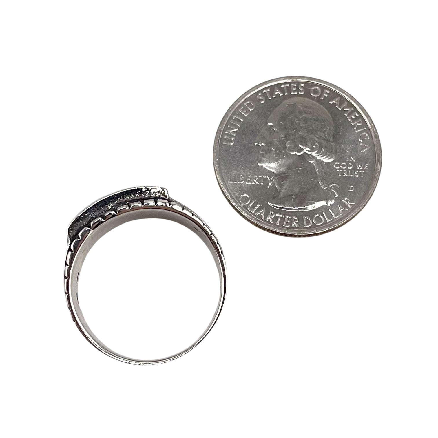 Turquoise Stone Rectangle Mens Ring Sterling Silver. Ring measures 1/2" wide and is available in sizes 9-12.