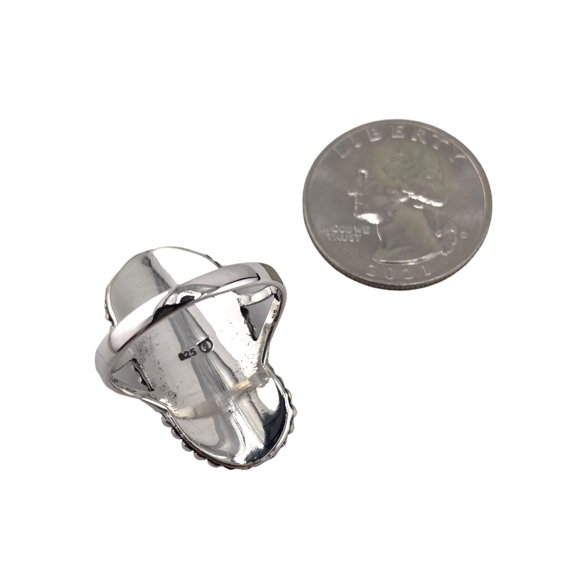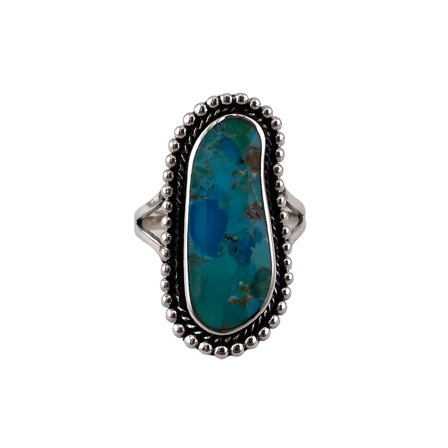 Turquoise Stone Ring Sterling Silver. This ring measures 30mm length, at the longest point and is available in sizes 7-11.