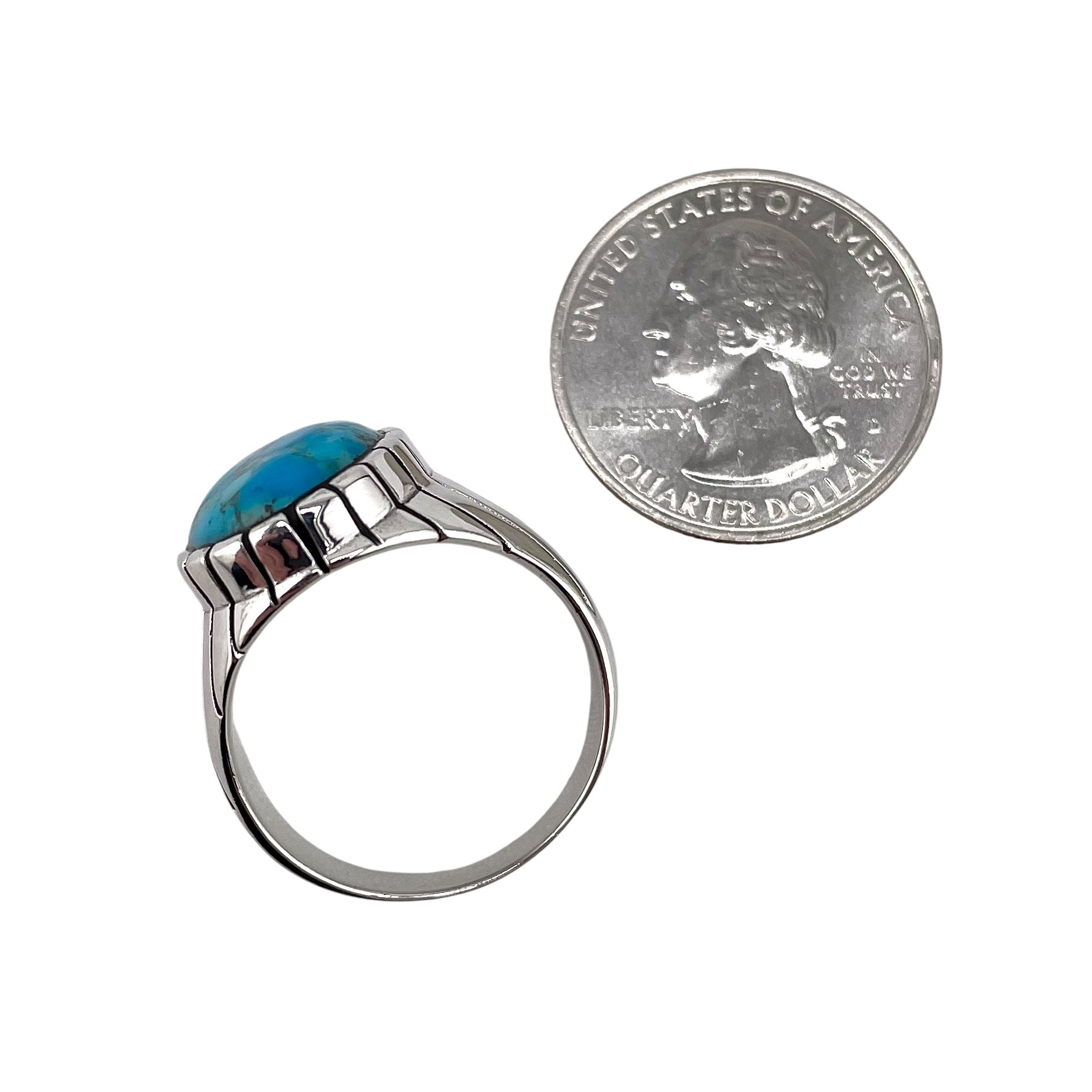 Turquoise Stone Round Oval Ring Sterling Silver. Ring measures 3/4" wide and is available in sizes 8-13.