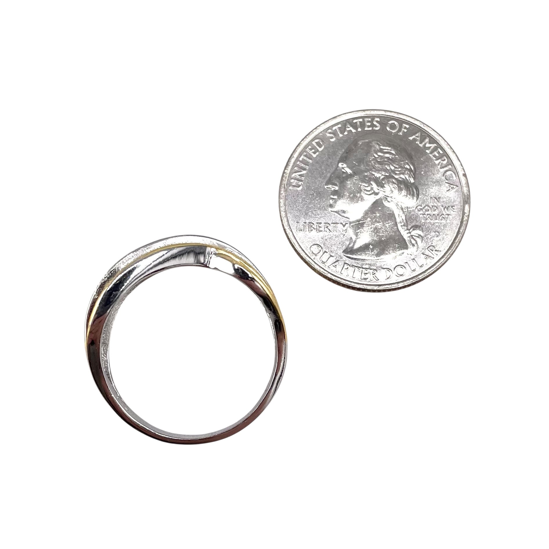 Two Tone CZ Curve Ring Sterling Silver & Gold Plate