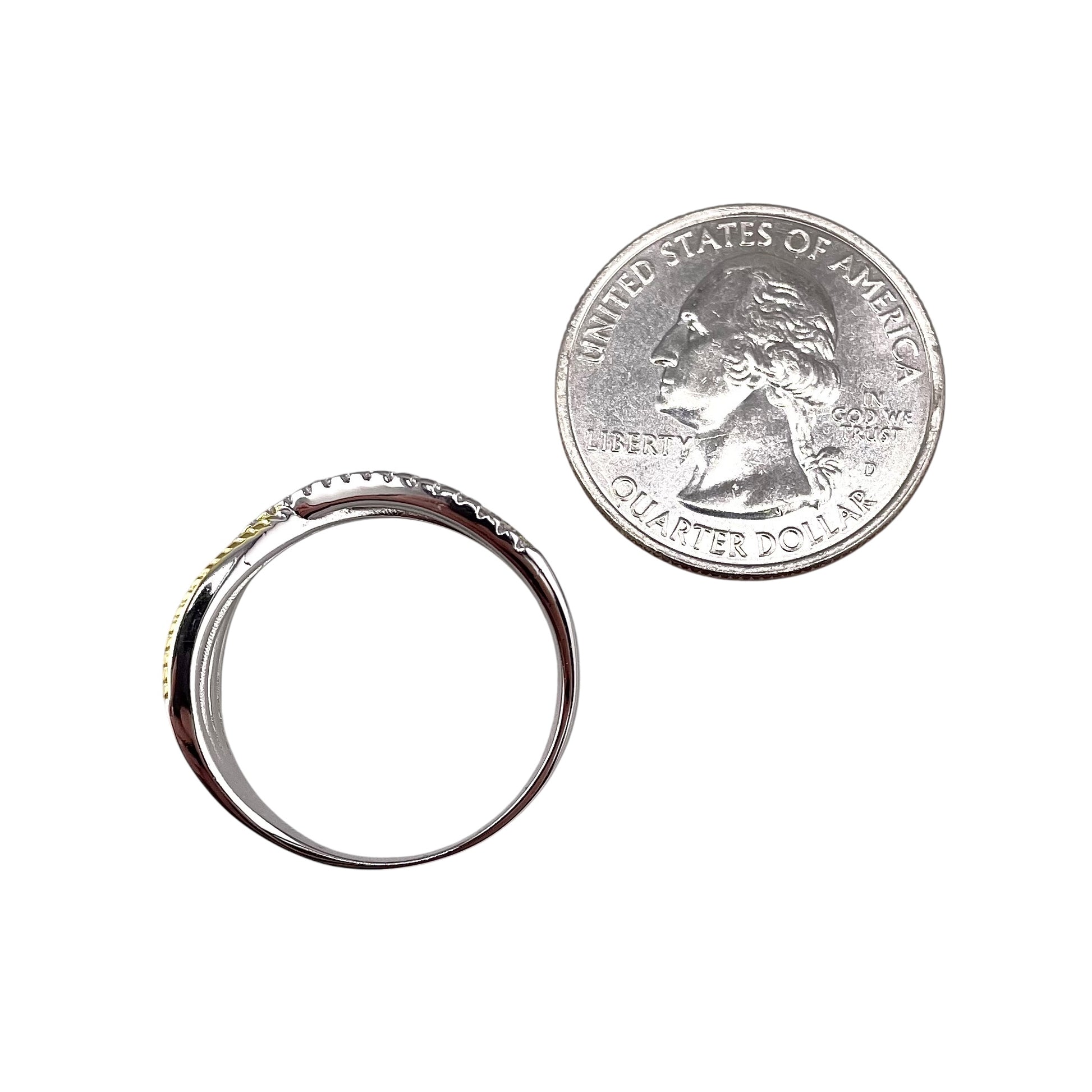 Two Tone CZ Row Ring Sterling Silver & Gold Plate. This ring measures 10mm wide and is available in sizes 6-10.