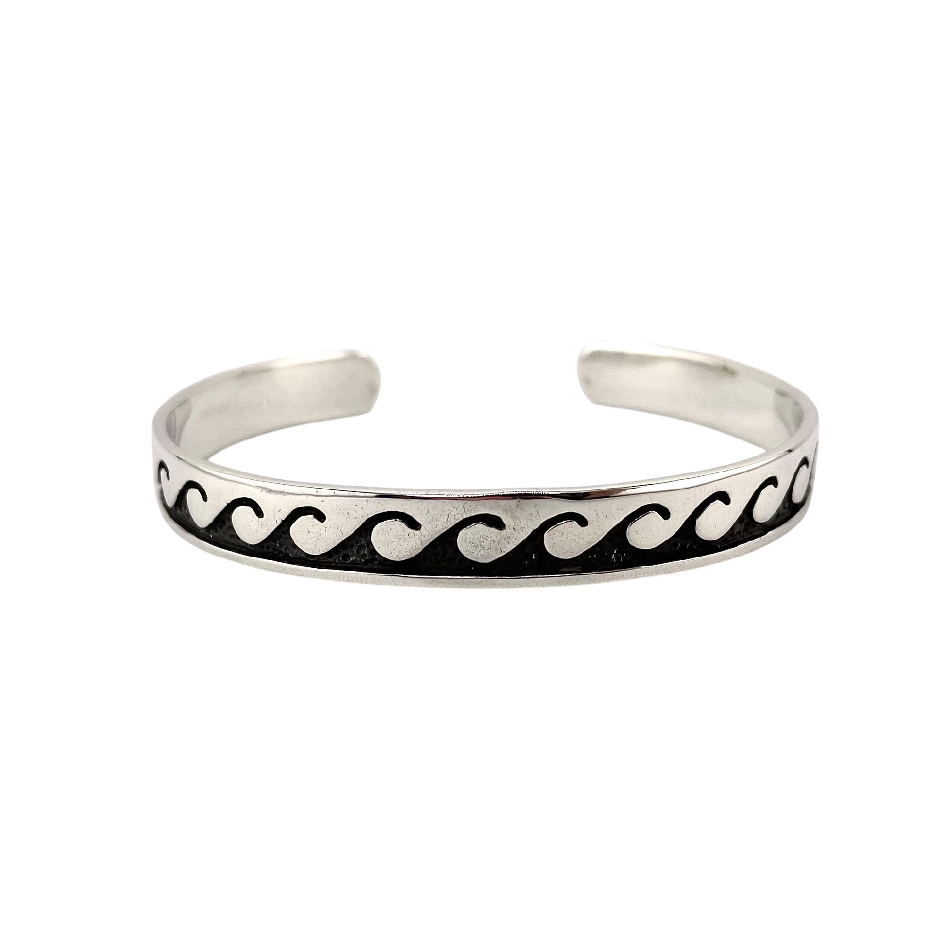 Wave Pattern Cuff Bracelet Sterling Silver. Measurements of this bracelet are 8mm wide and 5-3/4" along the inside.