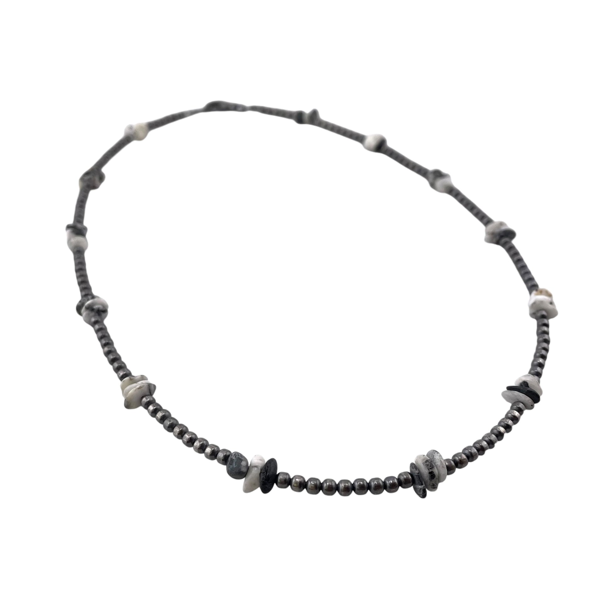White Buffalo Chip Desert Pearl Bead Necklace Sterling Silver
